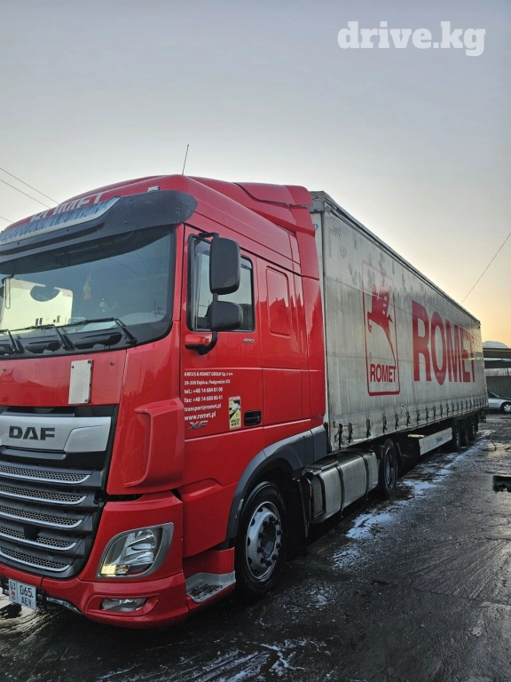 ПРОДАЮ ДАФ ХФ480 2018г мега пробек 720тс км.Прицеп крона 2013г. саф гусак 105куп мега шины_385 55 19,5 .свежий пригнан через Румыния растаможен Кыргызстан официальный. холодильник стояничный кондиционер и два автаномка сухой и влажный, рация и тефал все рабочий. машина полный обслуживан ходовой тигача и прицепа поменял колодки и прицепа смазен подшипники, поменял 2термостат смазен ролики и замена масла и фильтра EBS плок датчик обслужен короче готов на рейс. прошу за комплект 46000$ . срочно,тока наличка нет обмен и вариант.