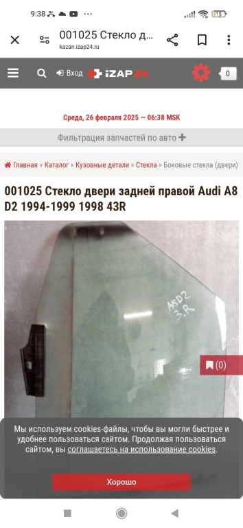 Боковой стекло, Стекло дверные Передний правый, Задний правый левый Ауди а8 Адрес Беловодск