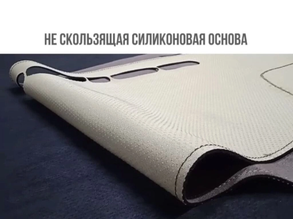 имеется резиновый подклад на гелиевой основе, что позволяет накидке держаться на панели и не скатываться.
