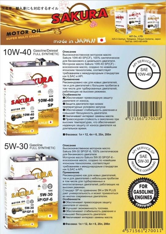 Качественное моторное масло SAKURA оптом и в розницу Оригинальное