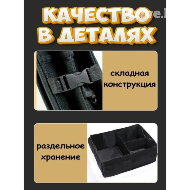 Простор и порядок: С нашим складным органайзером вы сможете легко разместить все ваши вещи в багажнике. Он оснащен различными отделениями и карманами, всему найдется место.