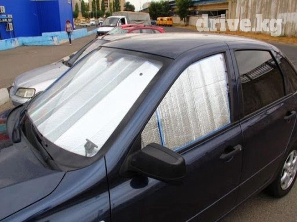 Солнцезащитная шторка из фольги, которую можно установить на лобовое стекло. Эта простая вещь отлично помогает немного снизить температуру в салоне, а также защитить пластик от выгорания под прямыми солнечными лучами