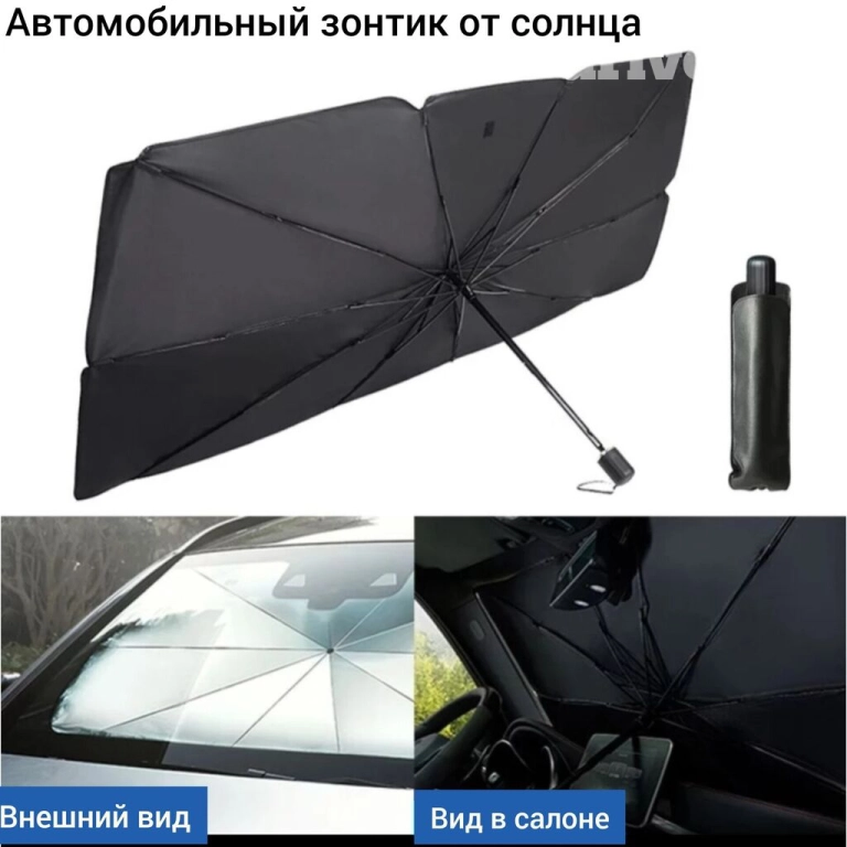 Насыщенные жаркие летние дни больше не будут проблемой, когда у вас есть наш надежный партнер в борьбе с жарким солнцем. Встречай удивительный складной автомобильный зонтик, разработанный специально для защиты вас и вашего автомобиля от неприятного излучения и перегрева!