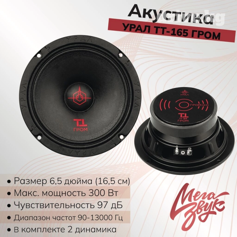 Номинальная мощность 150 ватт. Максимальная мощность 300 Ватт. Диапазон частот 90 - 13000 Герц.