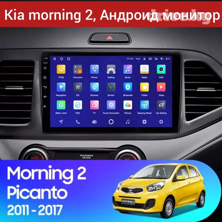 Штатная магнитола для Kia morning 2 поколения на базе Андроиде с большим сенсорным дисплеем 9 дюймов.