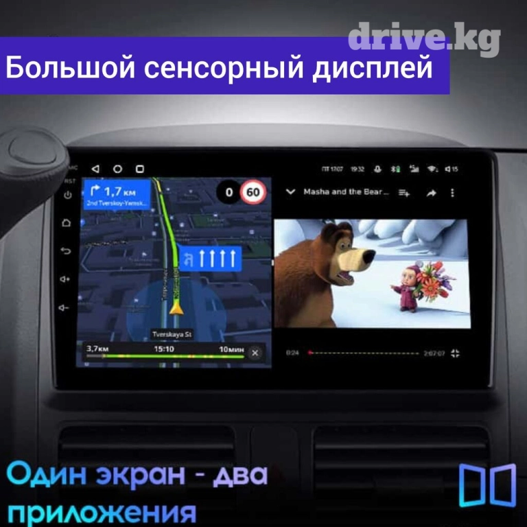 Цены от 9900 сом за комплект магнитолы с возможностью подключения Sim карты для выхода в интернет и 8 ядерным процессором.