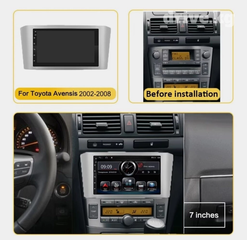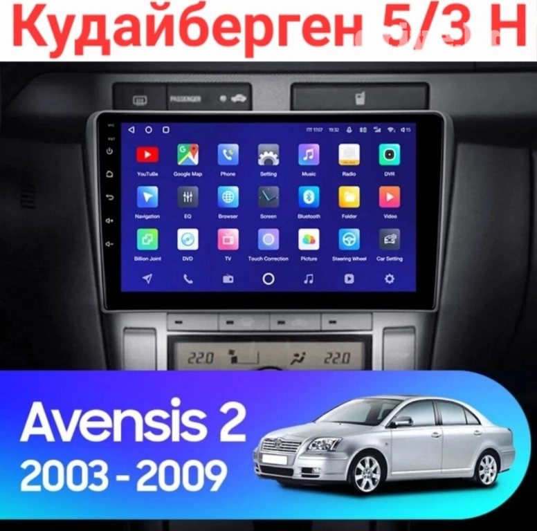 В наличии штатное головное устройство на базе Андроид для автомобиля марки Toyota Avensis 2. Размер дисплея 9 дюймов, при желании можно поставить монитор большего размера.