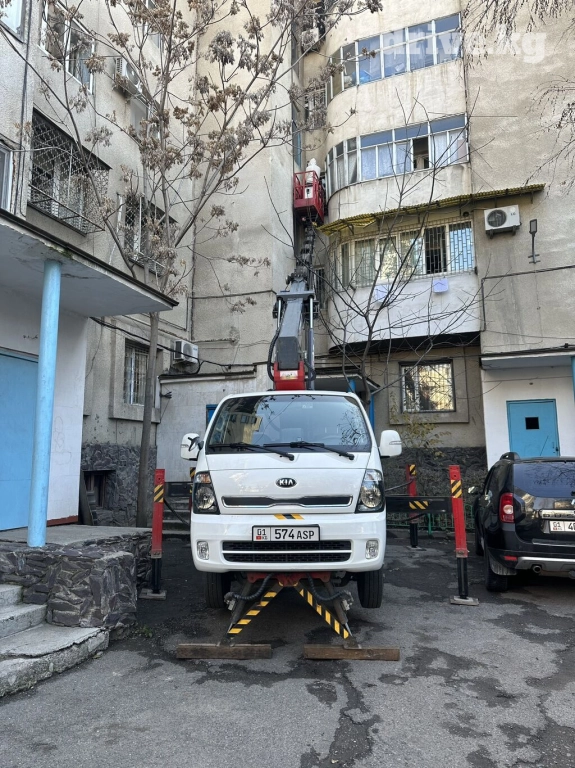 Автовышка услуги автовышки вылет стрелы 21 метров машина компактная может работать в уских местах и на брусчатках работаем без посредников в любое время суток 24/7 г. Бишкек минимальный заказ 2 часа