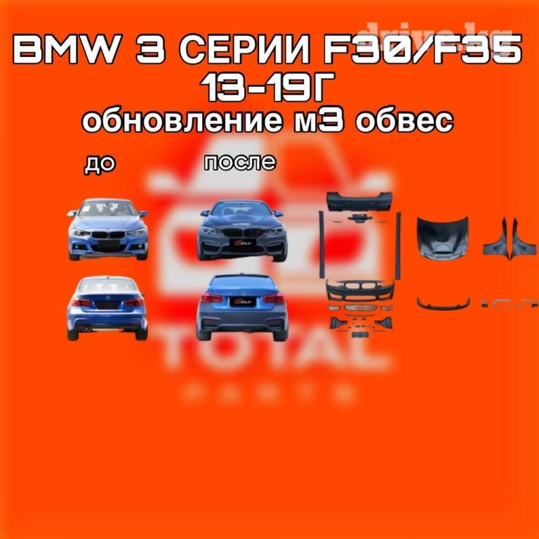 - Полный апгрейд внешности под M3 спереди и сзади, включая капот и крылья, с сохранением кузовной базы F30F35.