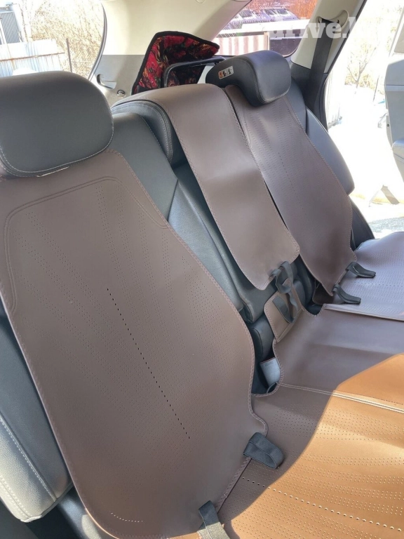 Накидка на сидения, очень хорошего качества, полный комплект абсолютно новый, на фото просто примеряли, цвет коричневый! Причина продажи заказали другую модель.