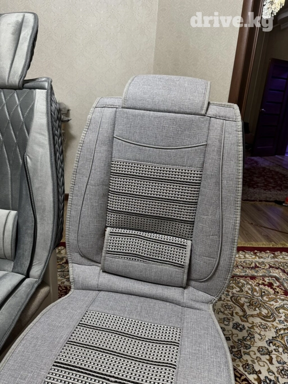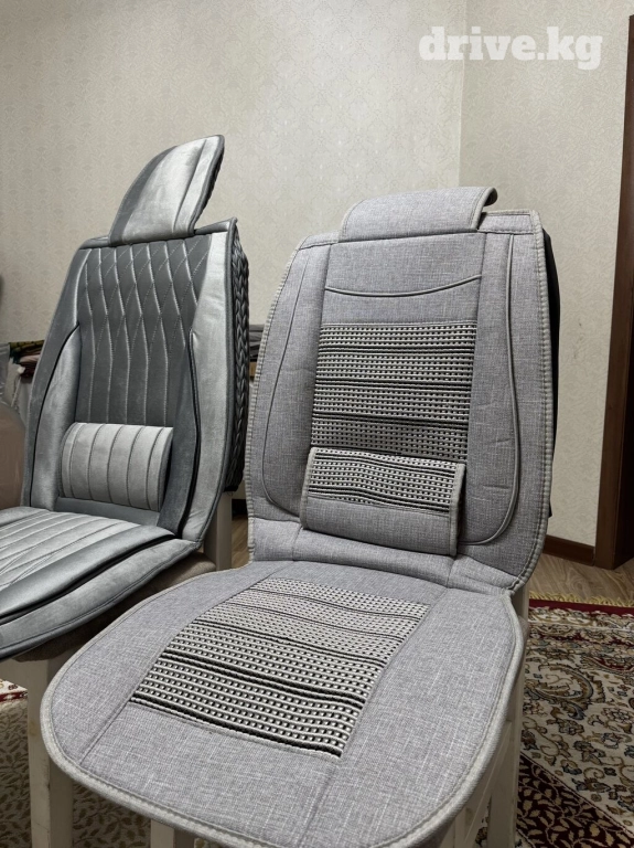 Серый цвет, ткань в рубчик. Новые. Сзади карманы, подушки на спинках, удобно для водителей. Отличный вариант подарка на грядущие праздники. Стоимость комплекта всего 4500с + бесплатная доставка внутри Бишкека