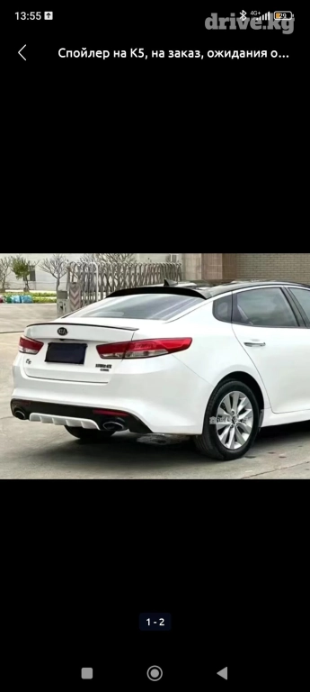 Спойлер на багажник, козырек на заднее стекло, и накладки на боковые зеркала в стиле БМВ, модельная кожа на руль, (кожаная обшивка руля) на К5 от 2016 до 2019 года в наличии, цвет чёрный глянец и корбон