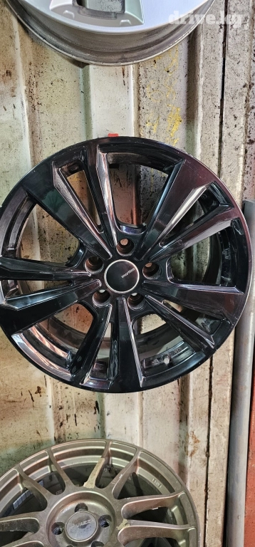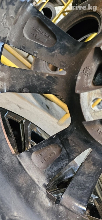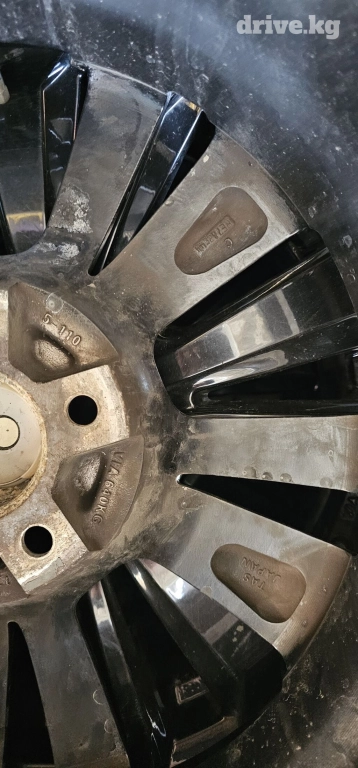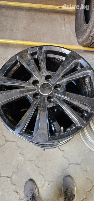 Комплект литых дисков с 10 спицами, окрашенных в черный цвет. Диски имеют центральную заглушку с логотипом производителя. Подойдут для обновления внешнего вида автомобиля или замены поврежденных дисков.