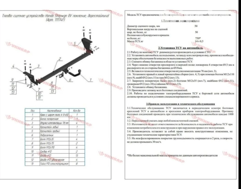 Фаркоп для Honda stepwagn rk5 2010 2014 Заводской новый Цена 13500с