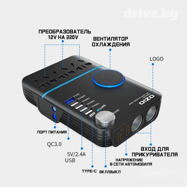 Количество ограничено!!! с 24В на 220В OZIO 200W 5USB+TypeC - оснащен мощностью 200 Вт, поэтому может одновременно питать несколько устройств.