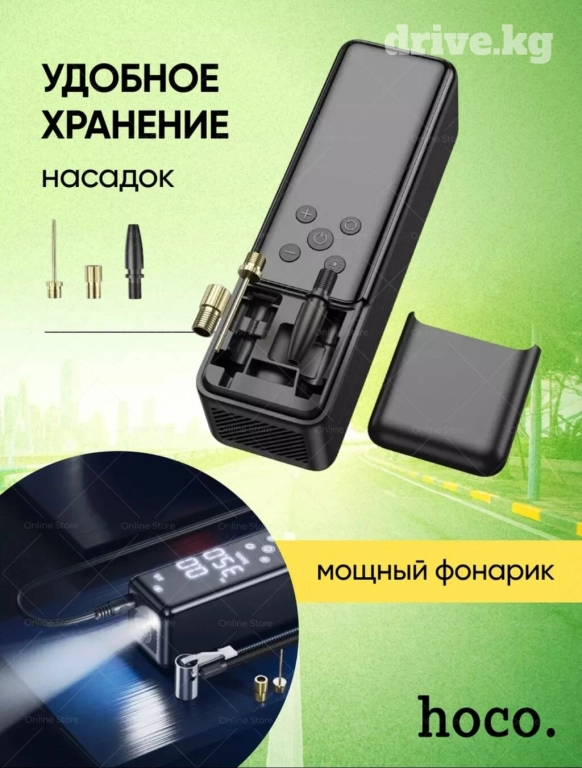 Насос Hoco — эффективный мини-компрессор. Гаджет уверенно надувает колеса легковых машин, мотоциклов, велосипедов. За 15 минут работы наполняется до 4 шин 205 / R16. Устройство весом 510 грамм подключается к прикуривателю. В комплекте воздушный шланг и набор насадкок. Поддержано 4 режима. Информативный дисплей облегчает использование. Фонарик — еще один плюс работающий в двух режимах. Отличный подарок для своих близких 😍🤩 Не забудь взять собой в поездки этот универсальный насос. ✅