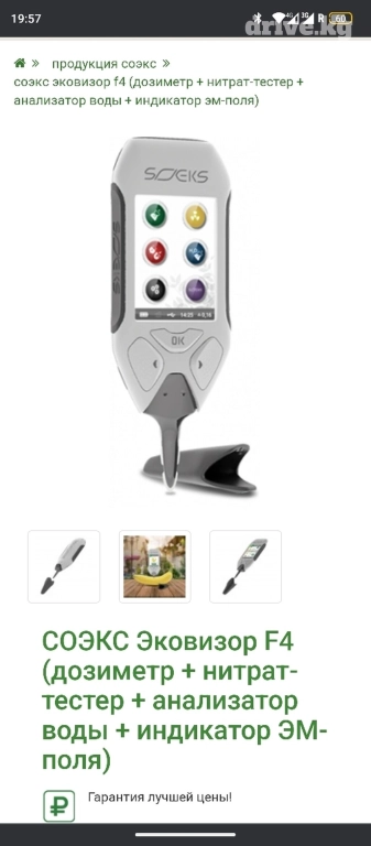 На сегодняшний день такие 4-е прибора как: бытовой дозиметр, нитратомер, тестер для оценки качества воды и индикатор электромагнитного поля уже давно перестали быть чем-то из области фантастики. Такой набор будет полезен каждому человеку, который хочет защитить себя от опасностей современного мира. Мы предлагаем вам не тратиться на покупку сразу 4-ёх приборов по отдельности, а приобрести один универсальный - Эковизор СОЭКС F4.