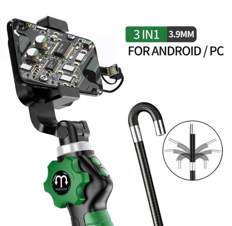 Эндоскоп промышленный со сгибающиейся камерой 8 мм и с фонариком. HD 1080q. Крепление для смартфона. Для осмотра камеры сгорания двигателя и клапанов. Подключается к смартфону ноутбуку через USB port. Без кейса 11000 сом. С кейсом 12000 сом. Также есть с 6 мм камерой для Айфона iPhone по 12000 сом. Также есть с 3.9 мм. камерой по 15500 сом. Телефон О 7 О 7 66 88 09