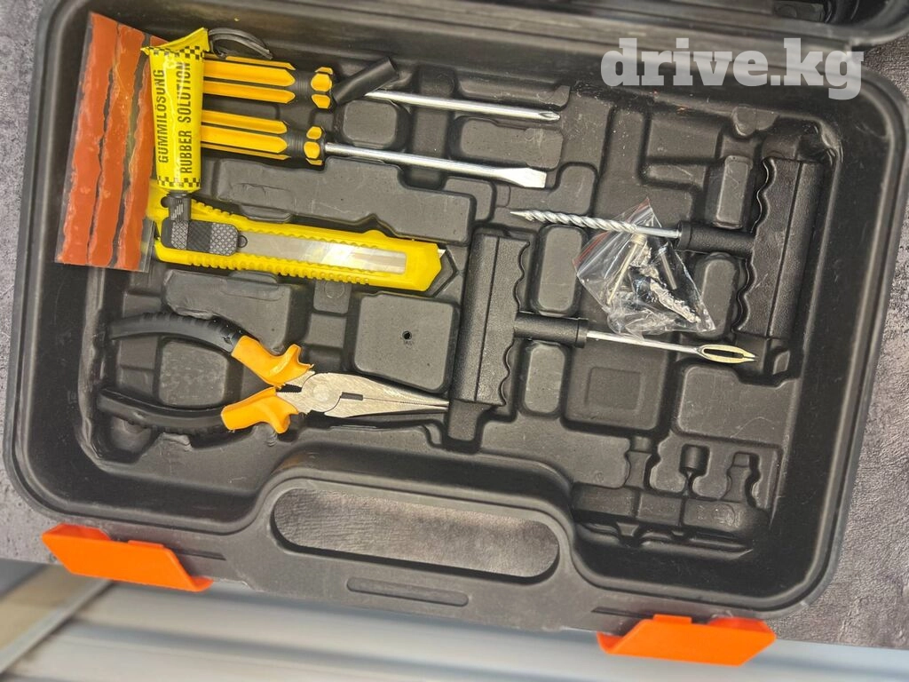 • Набор инструментов: отвертки, плоскогубцы, инструменты для ремонта шин,