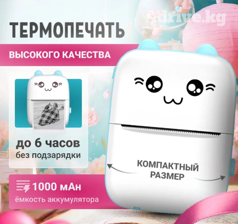 Мини принтер для телефона идеально подходит для печати наклеек, этикеток и чеков. Детский дизайн и маленький размер делают его привлекательным для детей и удобным для повседневного использования. Минипринтер беспроводной и имеет ручное управление. Термо печать позволяет экономить на чернилах и поддерживает высокую чёткость изображений. Работает по Bluetooth, легко помещается в карман, что делает мини-принтер портативным и мобильным для использования в любых условиях.