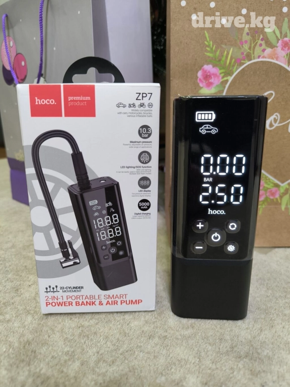 Портативная автомобильный Smart насос Hoco ZP7 5000 mAh Беспроводной для подкачки автомобиля, мотоцикла, лодки велосипеда и мячей. Фонарик работает в двух режимах. Компактный очень удобный насос не надо бегать со шнуром и подключать к прикуривателю, можно использовать в качестве Power Bank ✅