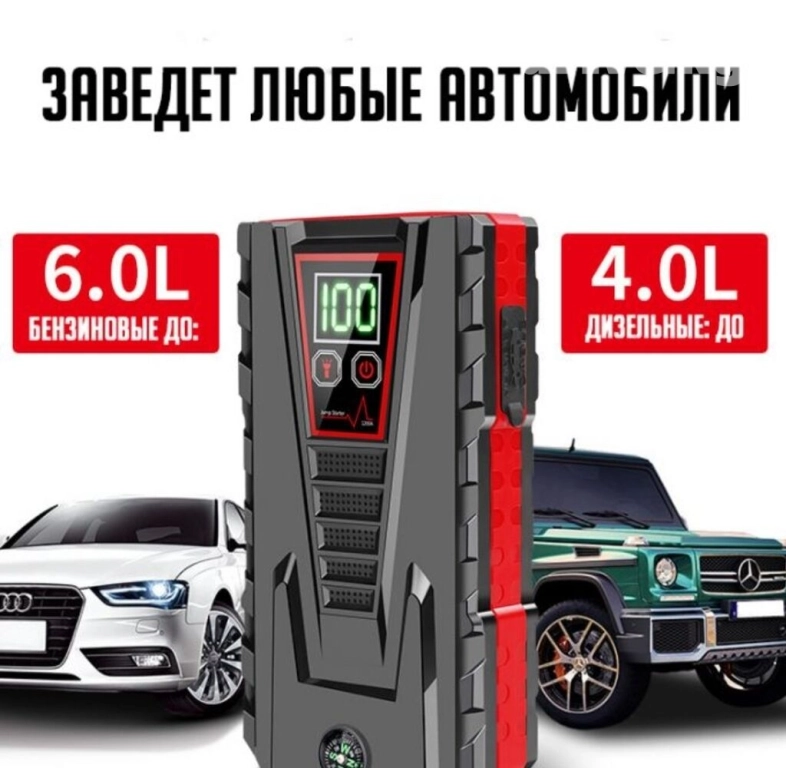 Автолюбители знают не понаслышке что такое севший аккумулятор, особенно если вы оказались в такой ситуации за городом, или в горах, а ближайший друг с проводами для прикуривания не берет трубку, спит или занят. Ну а о штатной ситуации, когда в прекрасное зимнее утро ваш автомобиль не завелся из за слабого АКБ, вообще можно не говорить. В данном гаджете установлен мощный аккумулятор на 10000 mah, который поможет запустить ваш автомобиль без труда. А специальные провода с зажимами, которые идут в комплекте, легко подключатся к любому автомобильному аккумулятору.