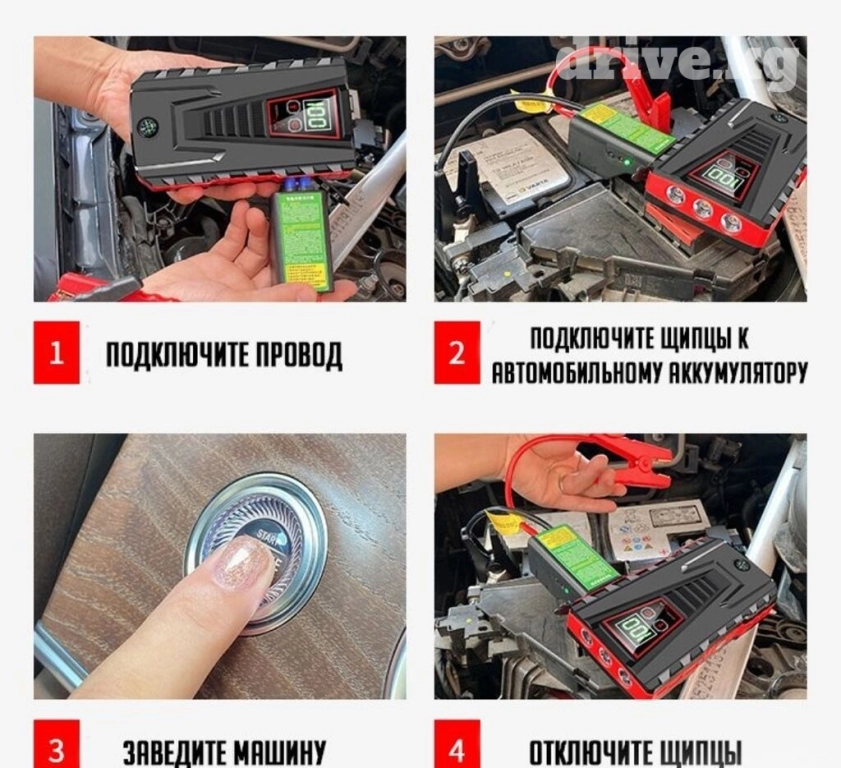 Автолюбители знают не понаслышке что такое севший аккумулятор, особенно если вы оказались в такой ситуации за городом, или в горах, а ближайший друг с проводами для прикуривания не берет трубку, спит или занят. Ну а о штатной ситуации, когда в прекрасное зимнее утро ваш автомобиль не завелся из за слабого АКБ, вообще можно не говорить. В данном гаджете установлен мощный аккумулятор на 10000 mah, который поможет запустить ваш автомобиль без труда. А специальные провода с зажимами, которые идут в комплекте, легко подключатся к любому автомобильному аккумулятору.
