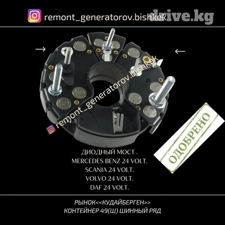Втулки.Запчасти на Автогенераторы 12-24 volt.Рынок "КУДАЙБЕРГЕН"контейнер 49(Ш) шинный ряд..
