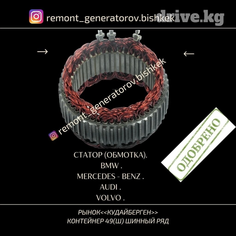 СТАТОР ( ОБМОТКА ) НА ГЕНЕРАТОР БМВ , МЕРСЕДЕС , АУДИ , ВОЛЬВО , Фольксваген .