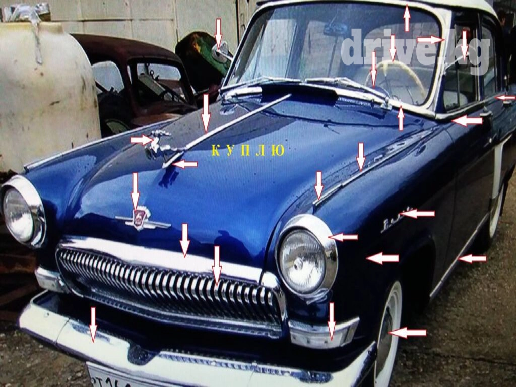 Куплю запчасти на "Волга" ГАЗ-24 и ГАЗ-21 "Волга". На Газ-24 указанные стрелкой детали и другие запчасти: боковые зеркала в сборе (но можно по отдельности корпус зеркала и крепления), передний бампер (можно только средняя часть), противотуманные фары, передние крылья, передняя решетка, эмблема на передней решетке, надпись «Волга» на переднем крыле и задней панели, колпаки колесные, дверные карты (обшивки), ручки, запчасти передней подвески , которые стрелкой указаны и другие запчасти.