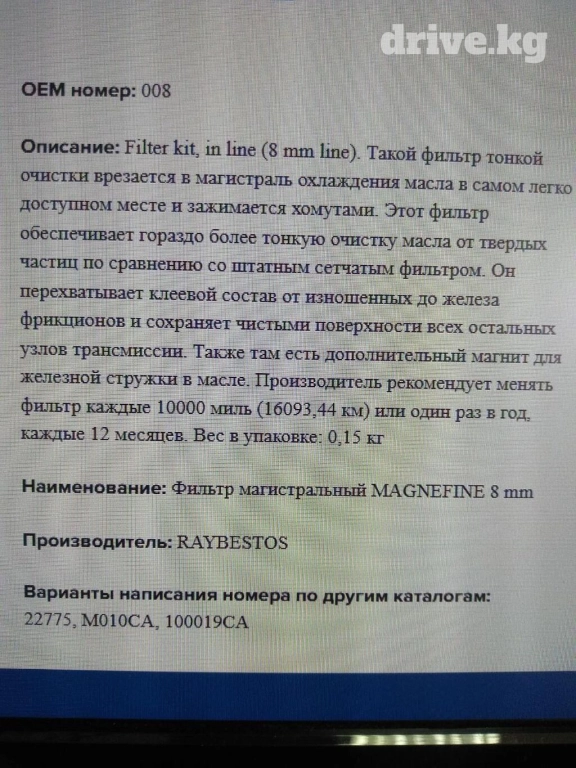 На вариаторы и автоматы АКПП фильтр внешний, тонкой очистки масла. Двухступенчатый, кроме обычного фильтра тонкой очистки имеет магнитный фильтр. Для автоматических коробок передач Форд, Хонда, Ниссан.