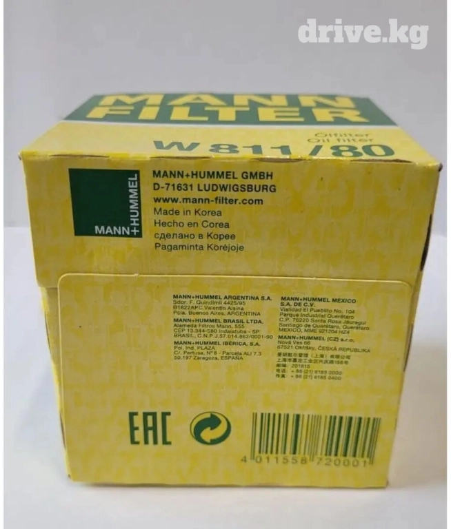 Продаю масляный фильтр для Kia, Hyundai, оригинал Mann, новый, w811/80, подходит на бензиновые двигатели 2.0, 1.6, 2.4 mpi cvvt