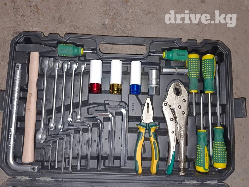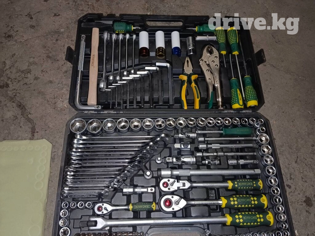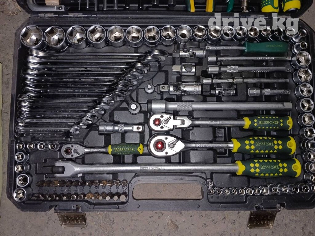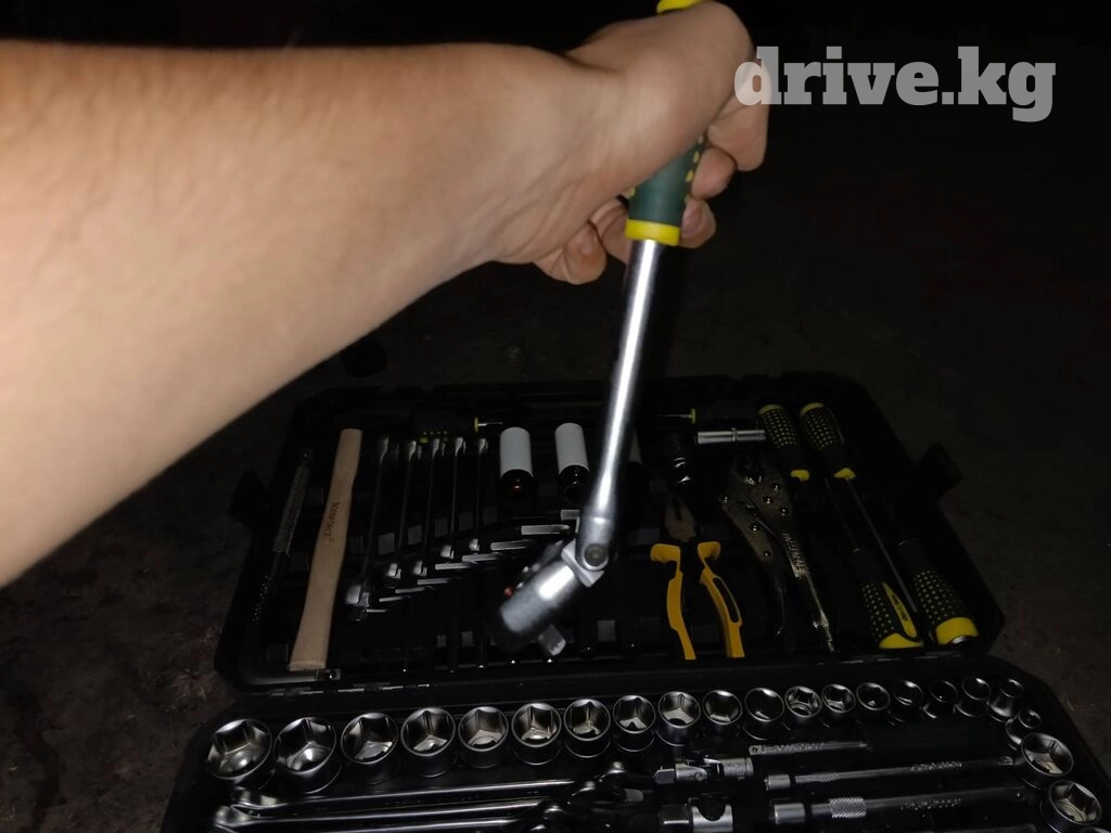 Длинные головки на 17, 18, 19 с пластмассовыми наконечниками для скручивания колёс без повреждений. Средняя трещётка имеет удобный фиксатор. Свечная головка имеет резинку для удобного вытаскивания свечи из колодца. Переходники с большого на средний и со среднего на малый