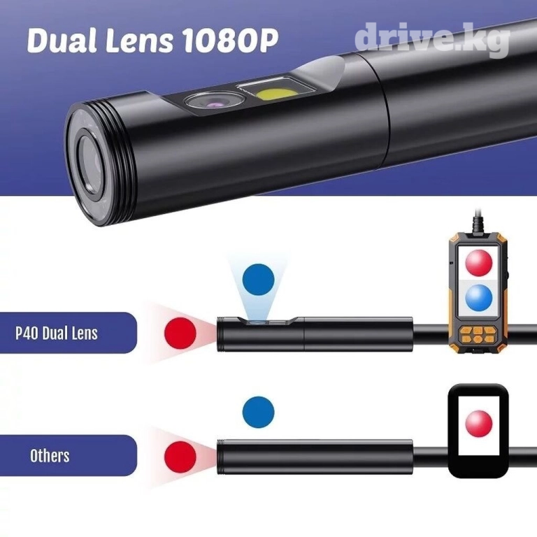 Технический Эндоскоп с экраном и двумя камерами (фронтальная и боковая).