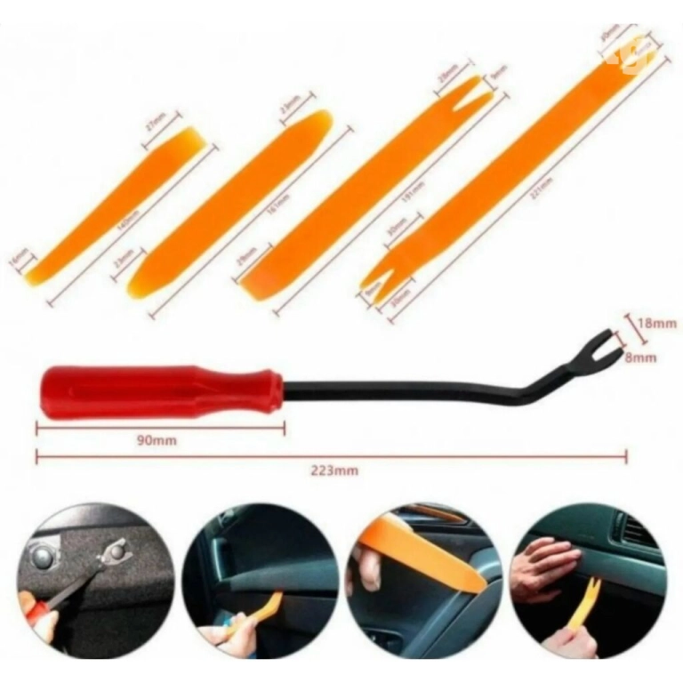 Набор лопаток для разбора обшивок в автомобиле — надежный партнер в работе с интерьером! Включает в себя разнообразные формы для бережного снятия пластиковых панелей, молдингов и пистонов. Делайте ремонт и обслуживание с легкостью, минимизируя повреждения