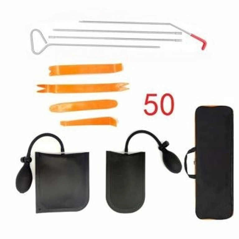 В комплект набора входит 11 предметов включая 2 пневмо подушки для более эффективного, быстрого и удобного открывания авто. Благодаря которым вы без труда отогнёте верхнюю раму двери для удобного доступа к её внутренней Стороне. Рекомендуем вам предварительно посмотреть инструктаж видео на ютюбе перед тем как приступить к вскрытию авто.