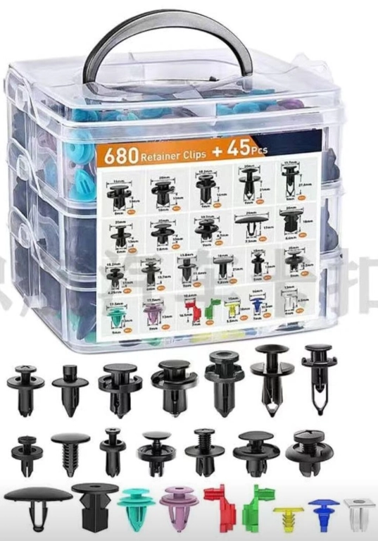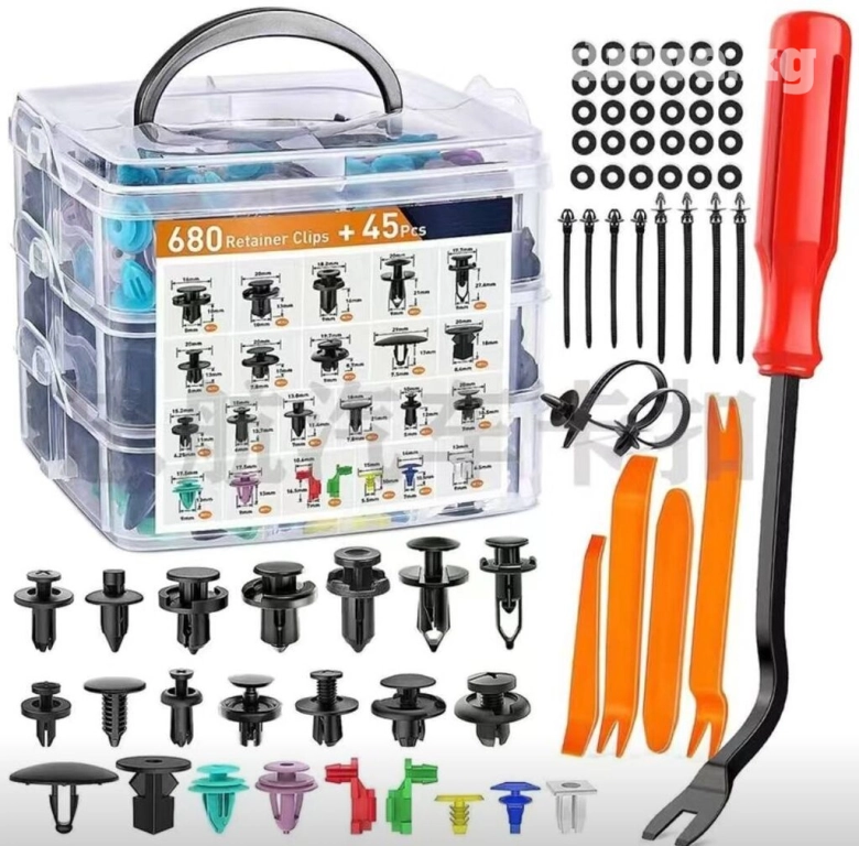 Набор клипс 725 шт. Плюс к нему набор инструментов для снятия клипс