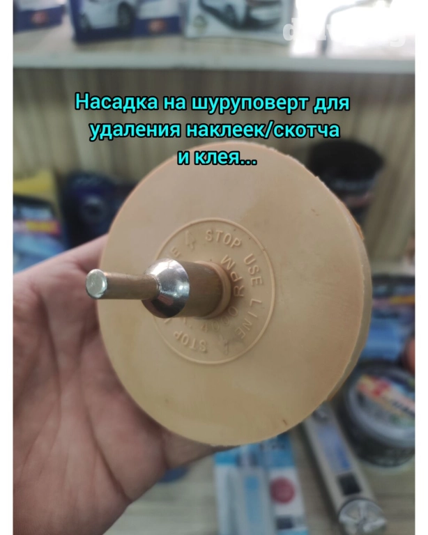 Насадка на дрель шуруповерт для удаления наклеек/скотча и клея.