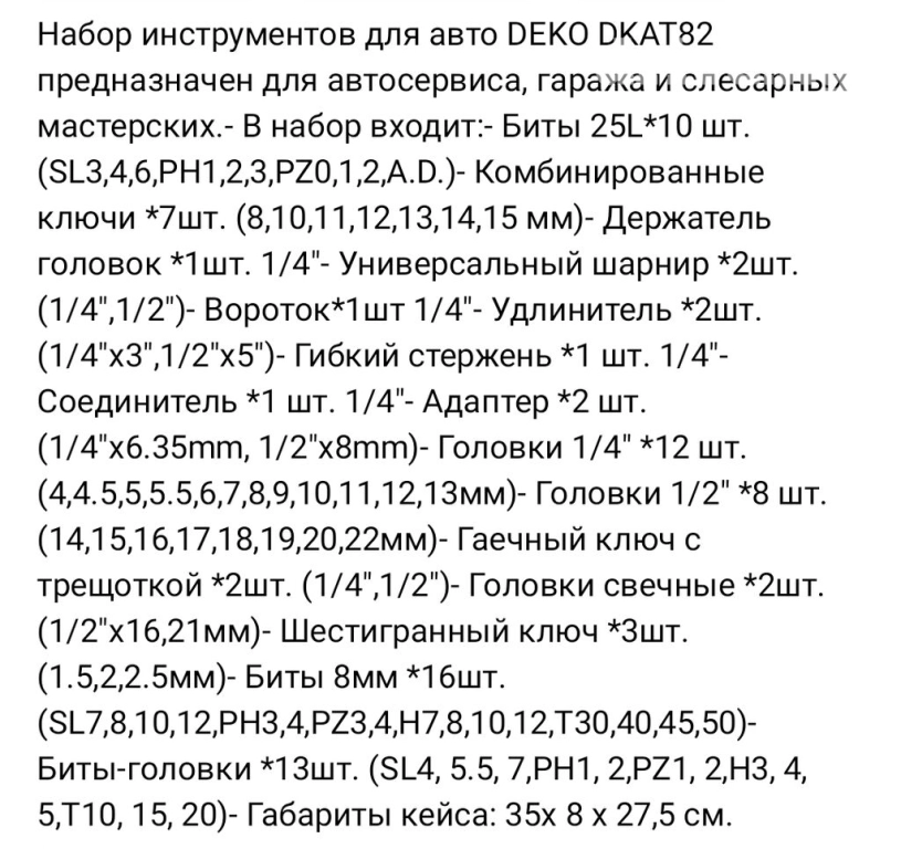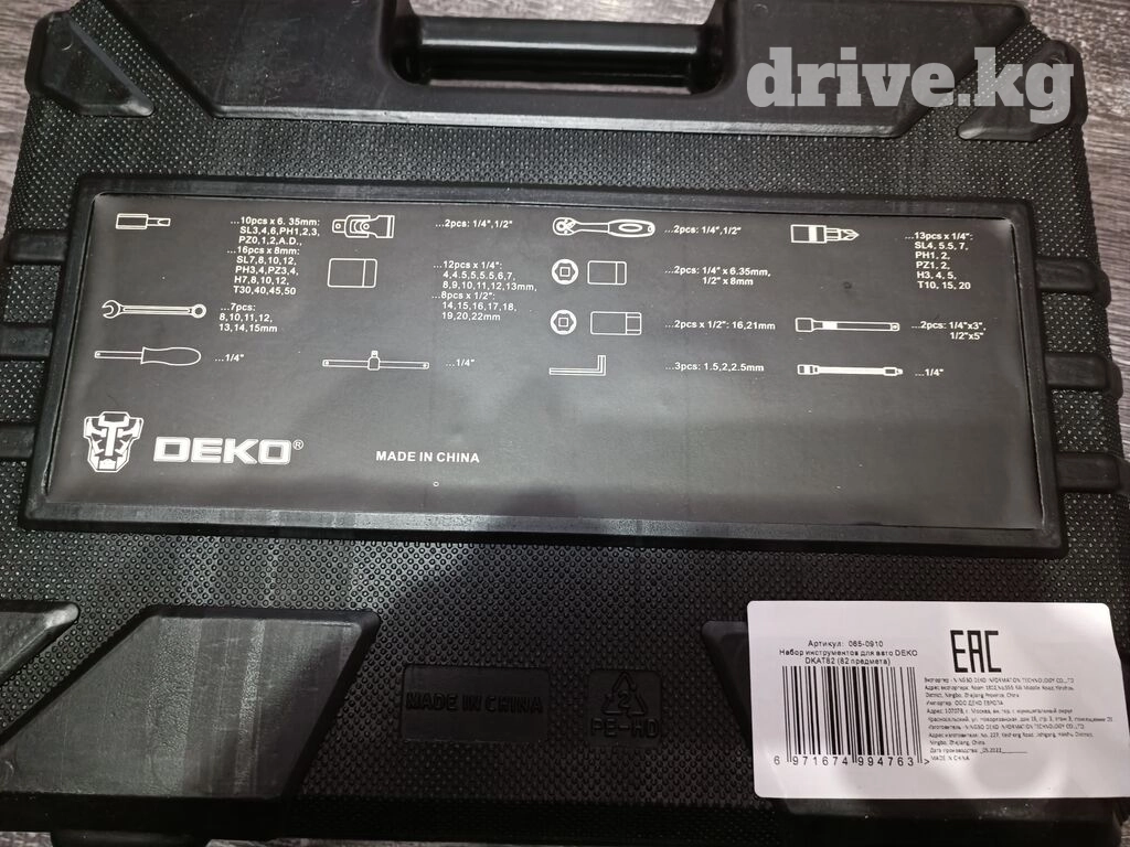 Новый набор автомобильных инструментов DEKO. 82 предмета. Фирменный заводской Китай. Историю бренда можно найти в интернете,как и отзывы о качестве... Кейс надёжный,замки защелкиваются уверенно. Внутри ничего не болтается и не выпадает. Экспортируется в 20 стран мира.