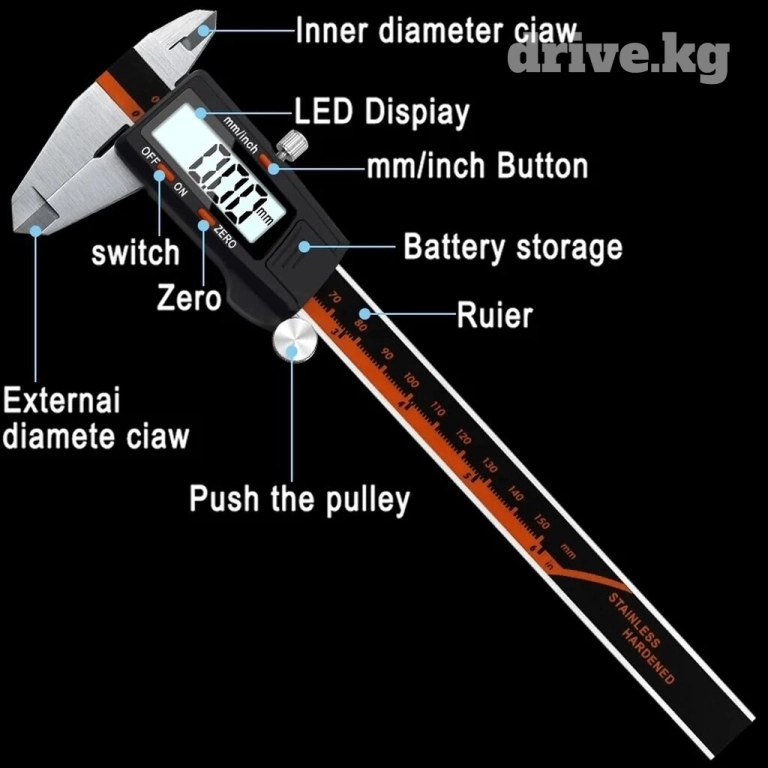Стальной штангенциркуль электронный 150 мм, отличного качества. Материал - высококачественная сталь. Для бытового использования, предназначен для высокоточных измерений наружных и внутренних линейных размеров, а также глубин отверстий на двигателе автомобиля и других. Цвет серый. В пластиковом кейсе. Новый. Телефон О 7 О 7 66 88 О9
