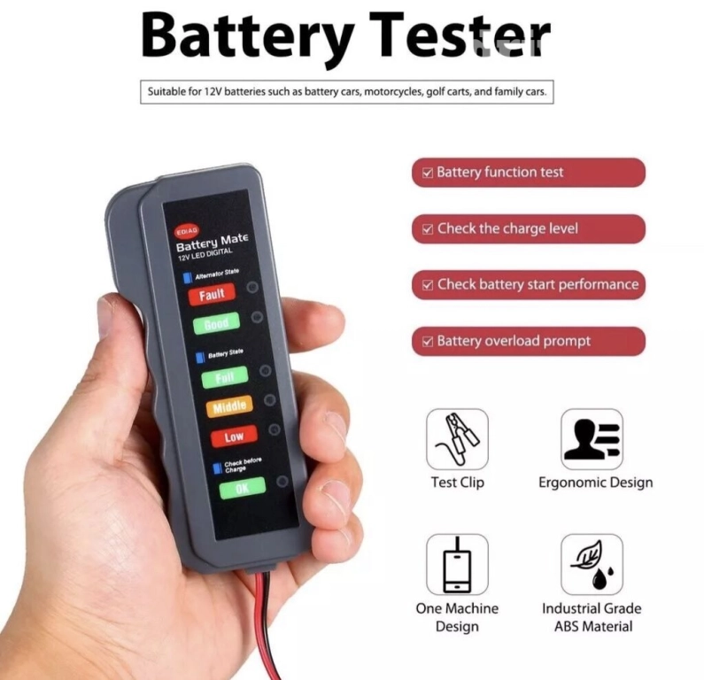 Тестер для авто аккумулятора - 12V Led Digital Battery Tester - Индикатор для аккумулятора который показывает его заряд. Простой в использовании подойдет для владельца авто. Благодаря этому устройству вы всегда будете знать в каком состоянии ваш аккумулятор