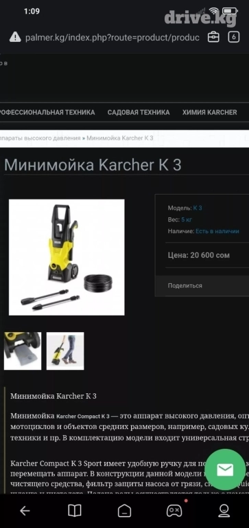 Трансбой Karcher k3 новый для дома моет машину навес двор брусчатку удобный в использовании шланг 6 метров две насадки плюс пенобочок пенонасадка в подарок производство Германия качество супер 120 барр 1600 ватт цена 18500 сом новый запечатанный в коробке в магазине стоит намного дороже karcher карчер керхер к 3