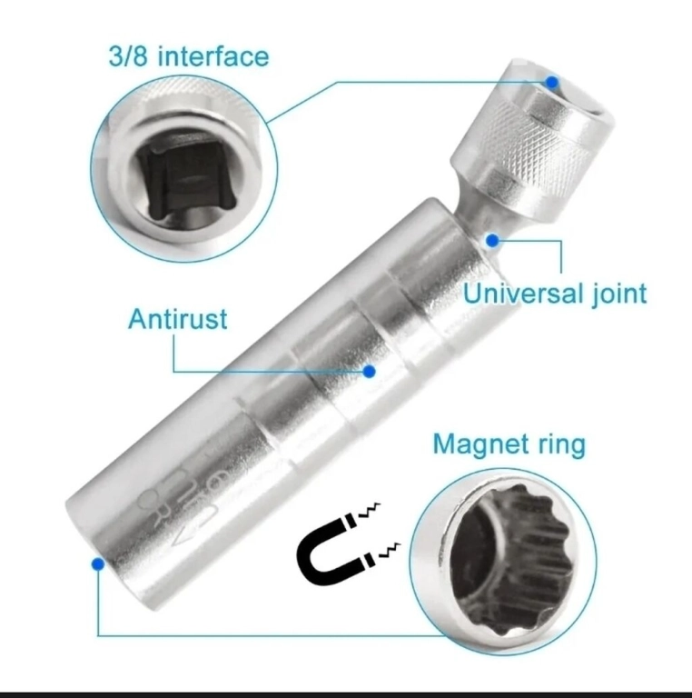 Удлиненные головки на 14 или 16 мм с магнитом, сгибаются на несколько градусов. Специально для снятия свечей зажигания автомобиля. Цена за 1 шт. 500 сом. телефон О 7 О 7 66 88 О9