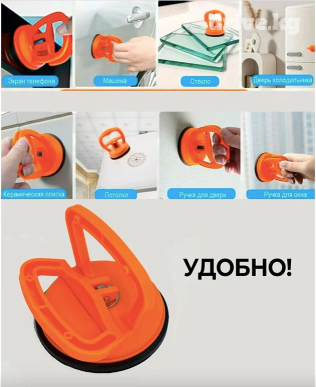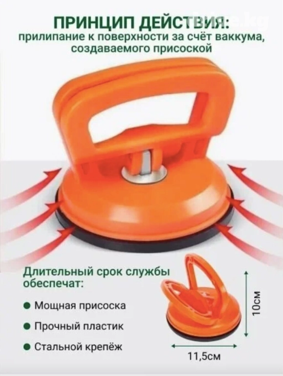 Основные компоненты стеклодомкрата-присоски включают герметичную вакуумную присоску и ручку для удержания. Корпус изготовлен из качественного износостойкого пластика, что гарантирует долговечность и устойчивость к коррозии, ржавлению и механическим воздействиям.