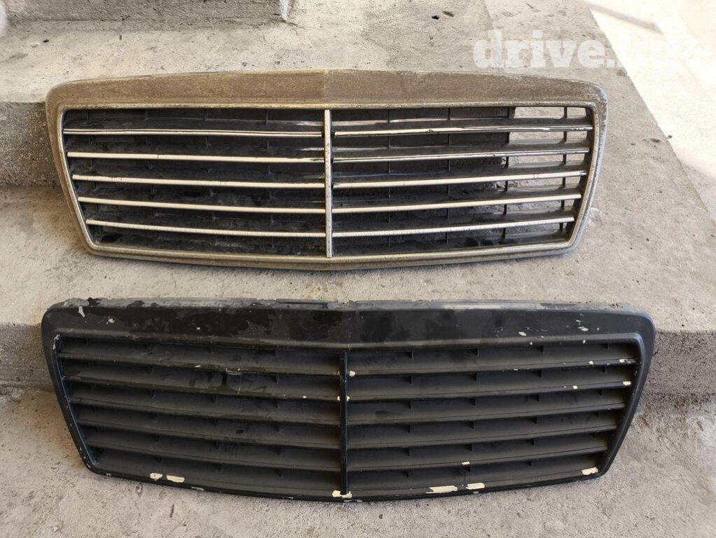 Продаю решетки радиатора Мерседес 210 лупарик 1998 год авангард в среднем состоянии, на одном имеется жёлтый налет на хроме, второй покрашен в черный цвет