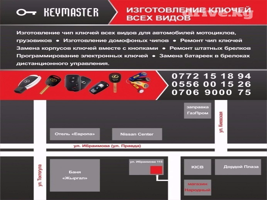 Виды услуг Изготовление чип ключей всех видов для автомобилей Изготовление домофонных чипов Изготовление обычных домашних ключей Ремонт чип ключей Ремонт автомобильных ключей и замков Аварийное вскрытие и ремонт Замена корпусов ключей вместе с кнопками Ремонт штатных брелков Программирование электронных ключей Замена батареек в брелках ремонт замков зажигания мерседес Ремонт замков