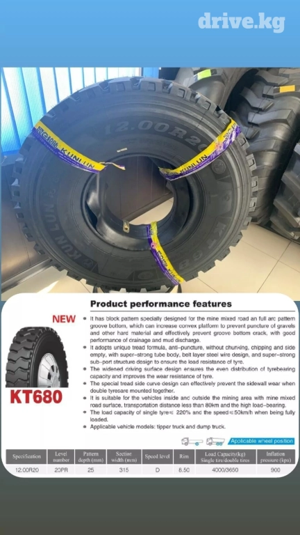 двойные шины смонтированы вместе. Он подходит для транспортных средств внутри и за пределами горнорудной зоны со смешанным покрытием дорог, расстоянием транспортировки менее 80 км и высокой несущей способностью.