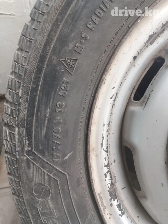 Срочно Продам 4 шт шины и диски с колпаком от мазды размер:175.70.13 торг уместен