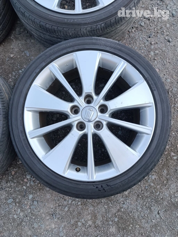 R-18 -5-114.3. Привозные из Японии. Диски и шины летние комплект 4 шт. По нашим дорогам не ездили. Диски не вареные, не катанные. Геометрия ровная. Родная краска. Состояние отличное. R-18/8J. Et-45. Dia-60.1. Оригинал Япония Тойота - Краун. Лексус. Шины -225-45. Пр- 90 % . ОБМЕНА НЕТ.