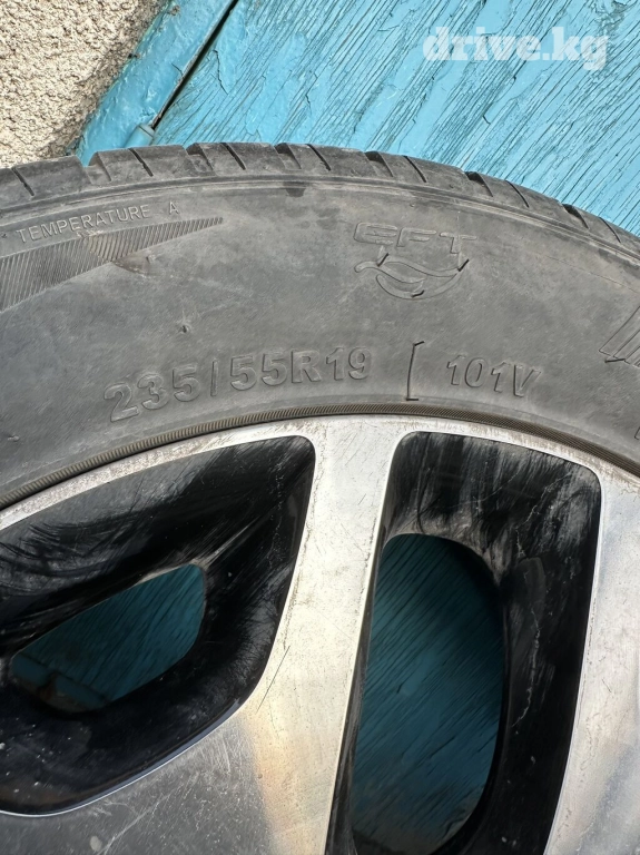 Продаю шины с дисками 235/55/19 лето! Подойдут на Киа спортейдж карнивал соренто и тд! Машину продал на зимней резине, а комплект летних остался! Цена 60000 сом
